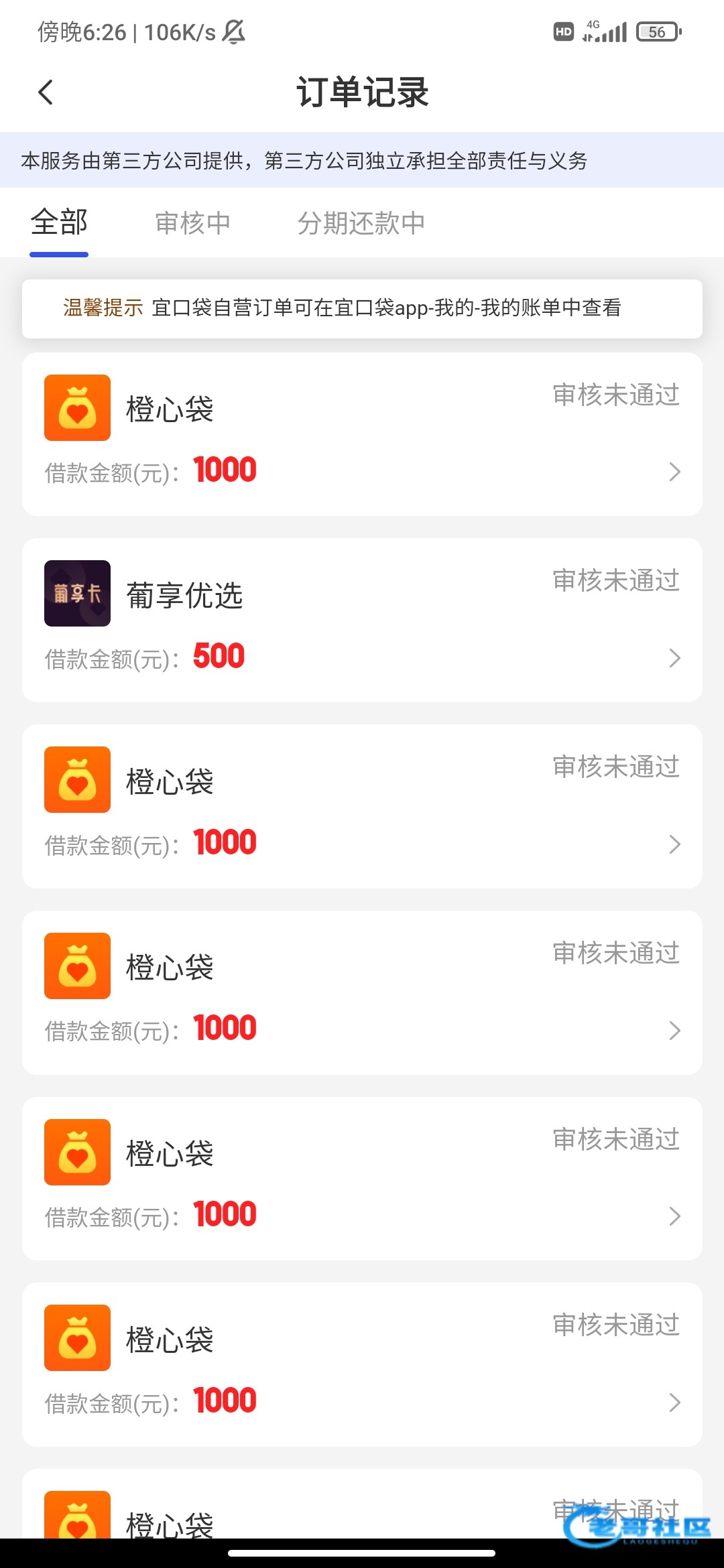 橙心贷申请就是秒拒,都不会审核。宜口袋又一直不让申请。越急用钱越下不了