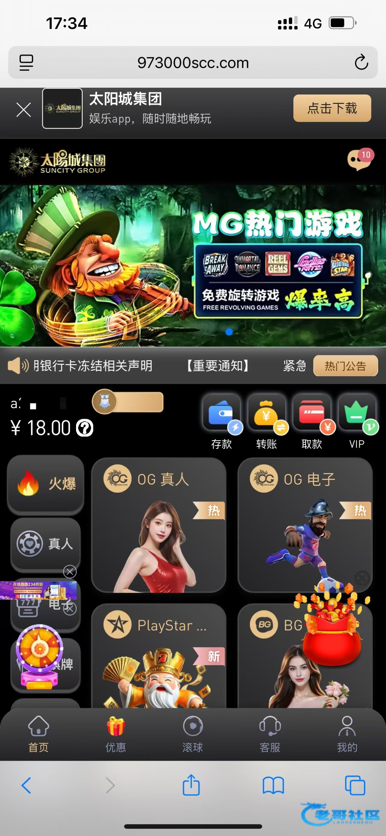 来电话我不知道账号找客服问了账号他们把我密码重置了。送了18元链接是www.003sc.com