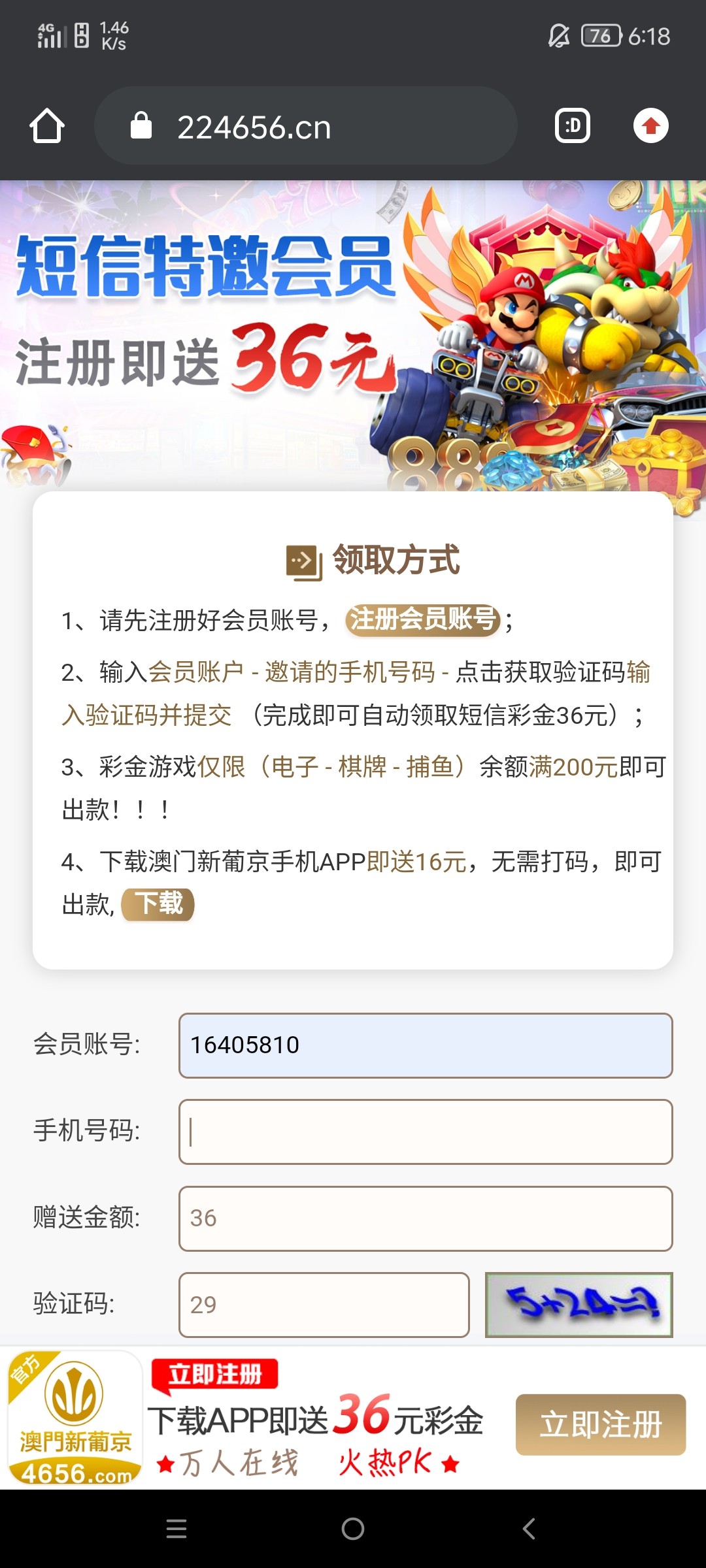 先去验证再去注册,新用户注册下方自助领取秒36