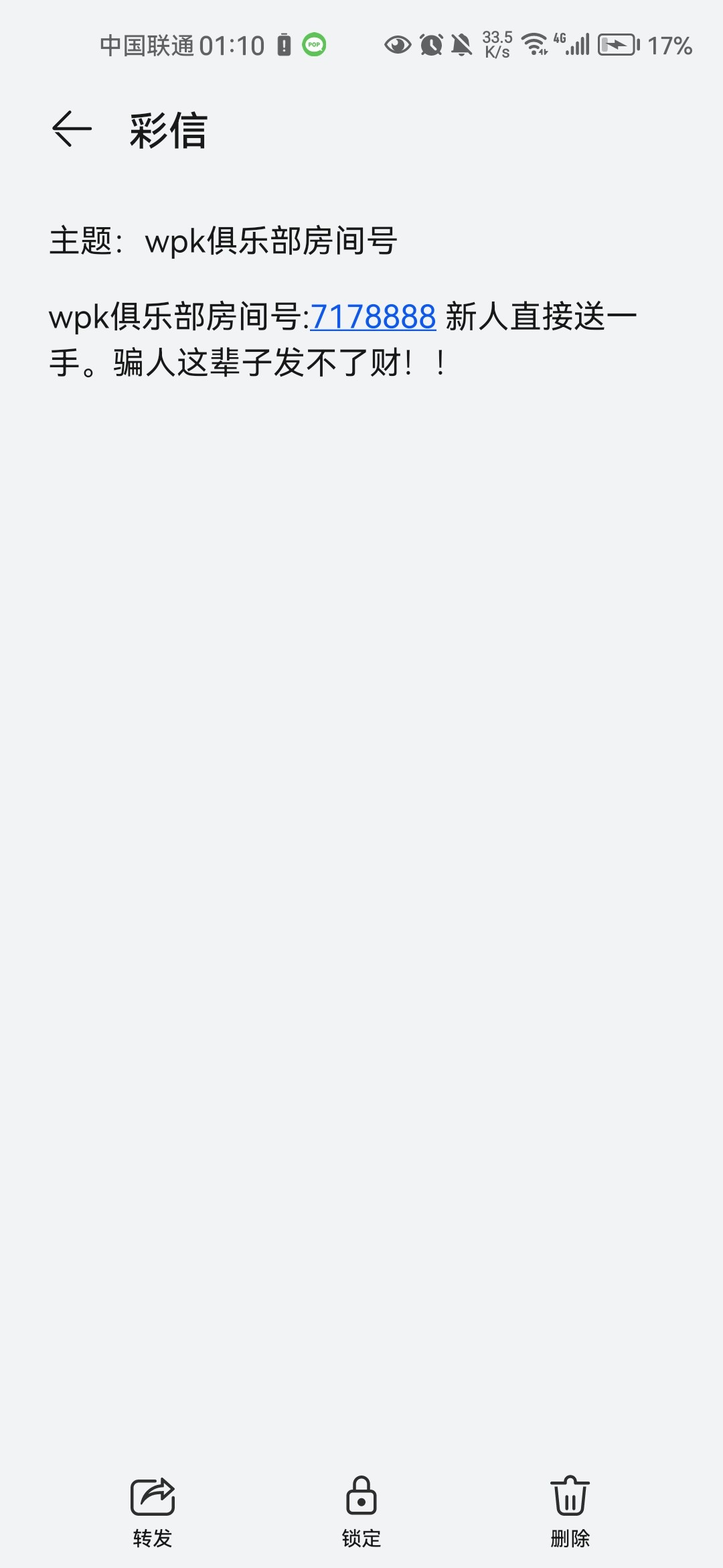 一个月之前的短信了 之前微信被这个轰炸了一直加我 一堆人