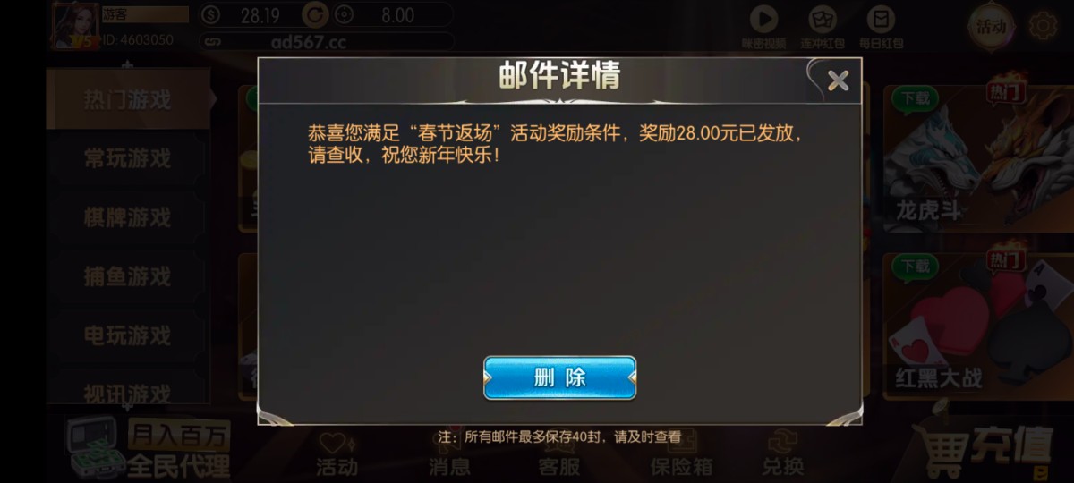 奥多新年v5送28 我是v5 有号的可以上去看看 地址ad567.cc