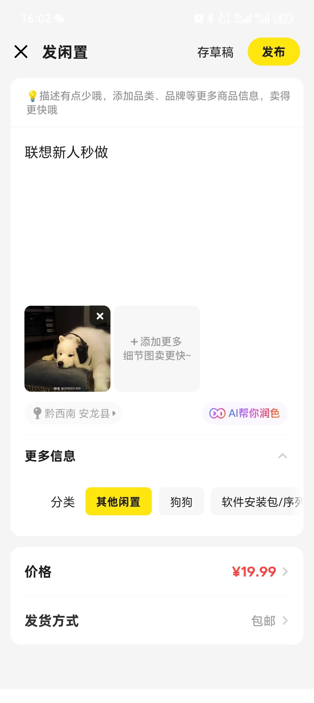 去闲鱼发布闲置 联想新人19.99一个 会有人收 按照他的要求做 和出超级链接差不多的 白嫖到的老哥帮忙反馈一下