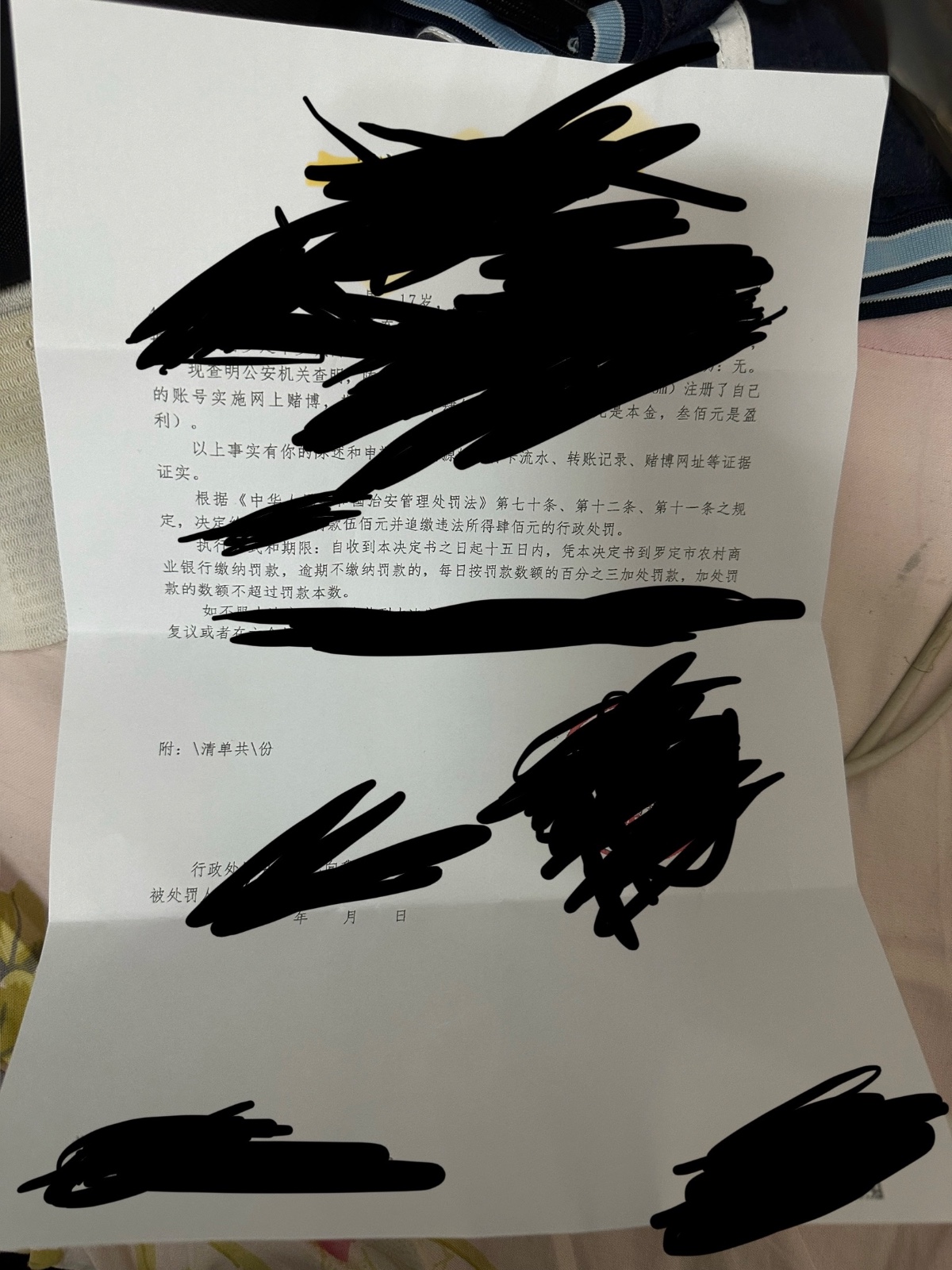 今天早上9-10点到派出所面见,然后死吗jc凉了我一个半钟头,录口供,坐笔录,就说那笔钱是第一次玩,这的那的然后索嗨jc录了11页就上100下400搞到18点半才回家,结果就是如图所示罚500退赃