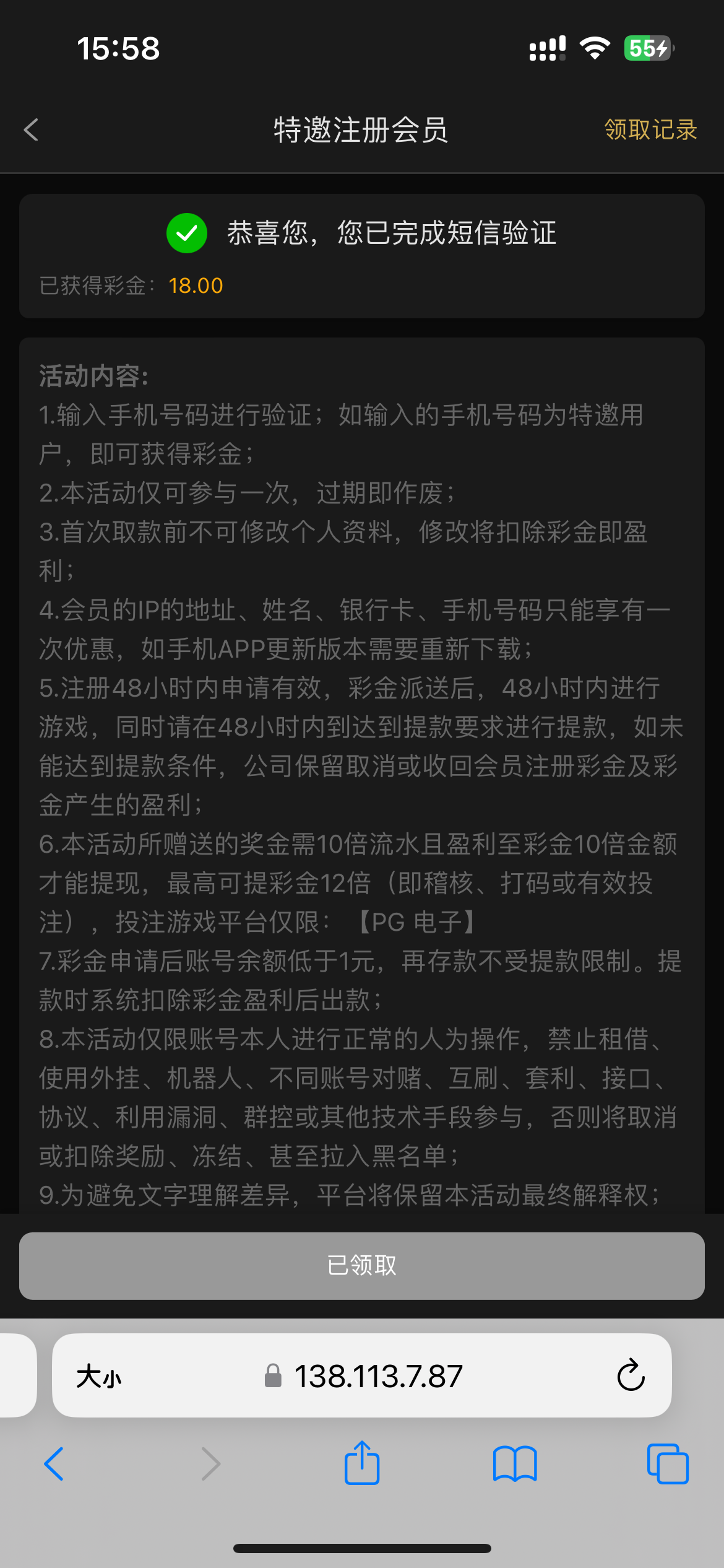 昨天注册的还没有 今天来短信了短信网址www.31162.blog 没有领到的老哥别中出我