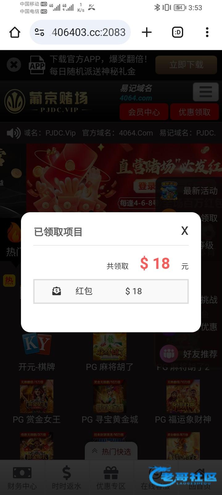 电话回访彩金 我的送了18 没打出来 有号的登录看看 网址 836.cc