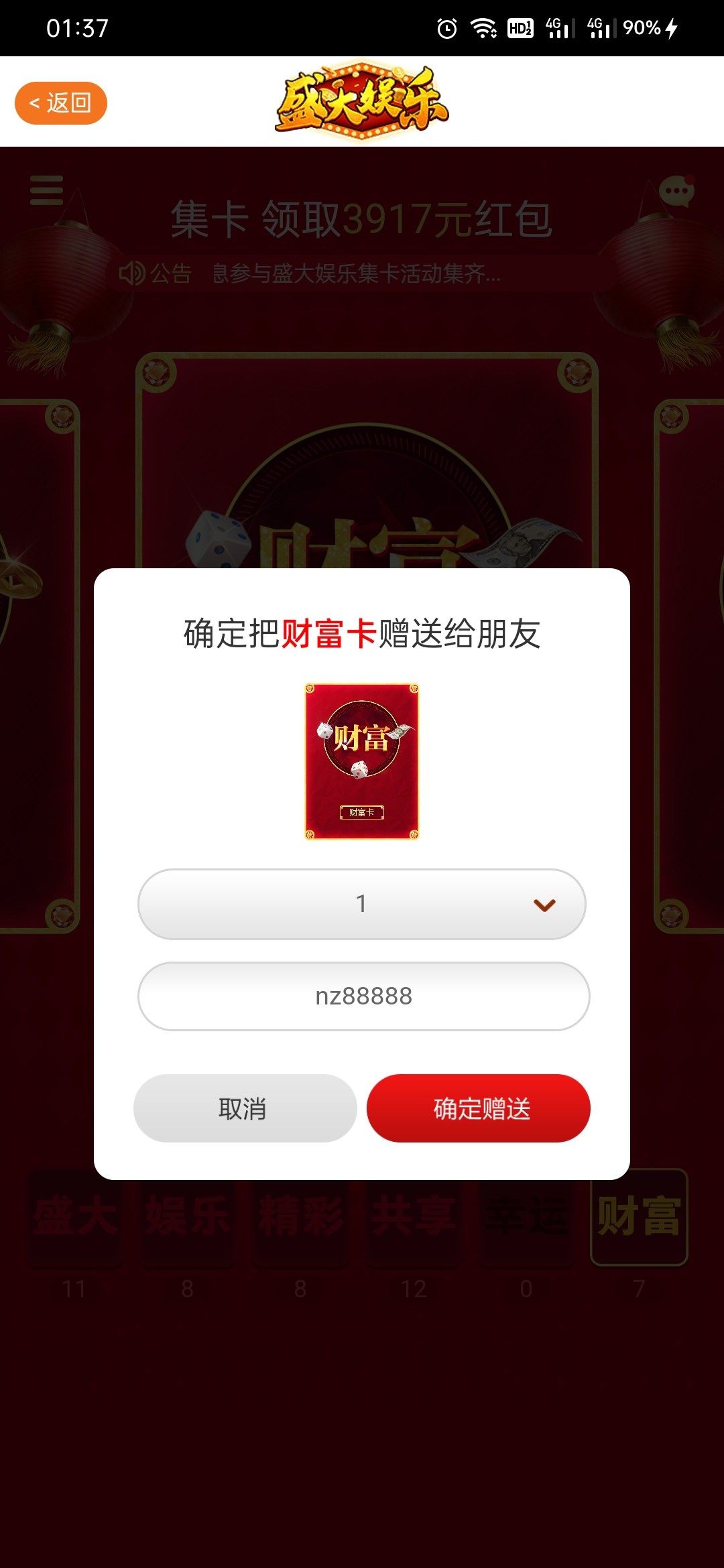 哪位老哥可以送一张幸运卡给我,账号qiuqiugei8 下个月15号发工资v你