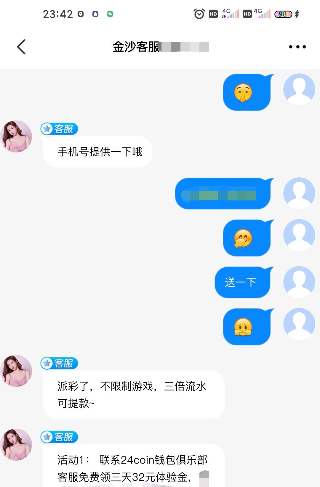 进去找客服申请下载聊天软件,不知道黑不黑没打出来
