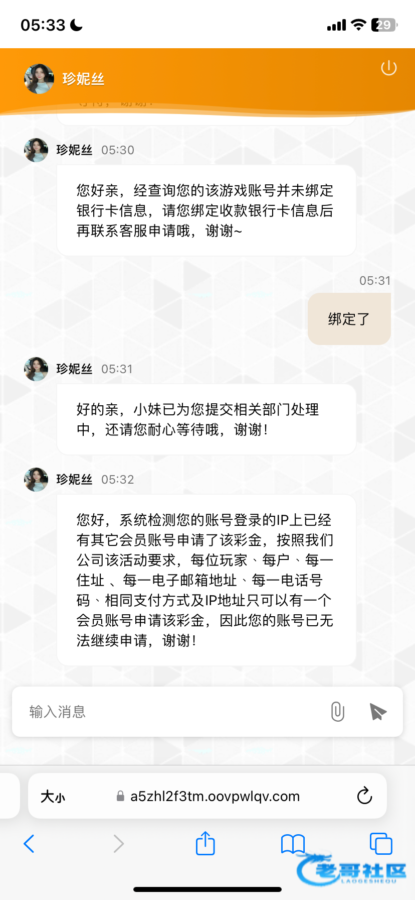 您好,系统检测您的账号登录的IP上已经有其它会员账号申请了该彩金,按照我们公司该活动要求,每位玩家﹑每户﹑每一住址 、每一电子邮箱地址﹑每一电话号码﹑相同支付方式及IP地址只可以有一个会员账号申请该彩金,因此您的账号已无法继续申请,谢谢!