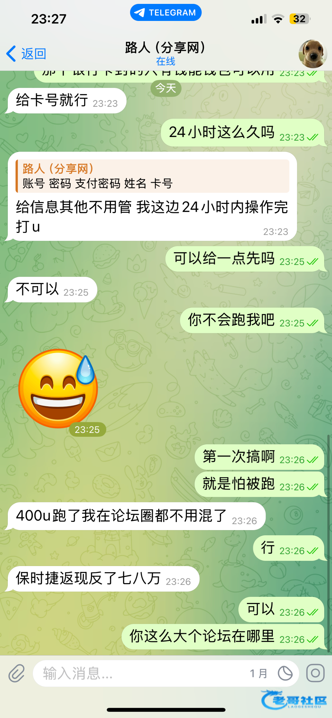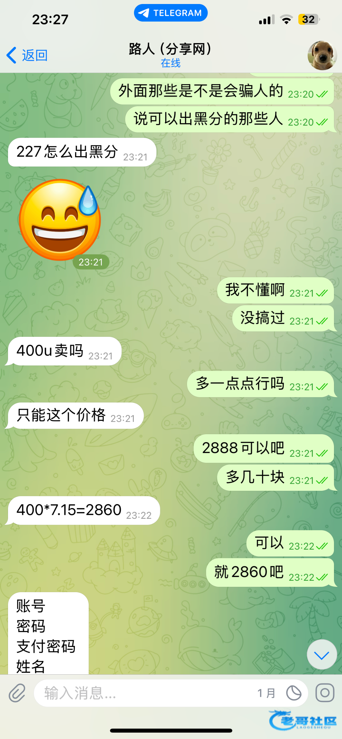 跑路狗说买我这个号帮出黑分2800卖给他结果没打款直接跑路说24小时内给我结现在直接跑路