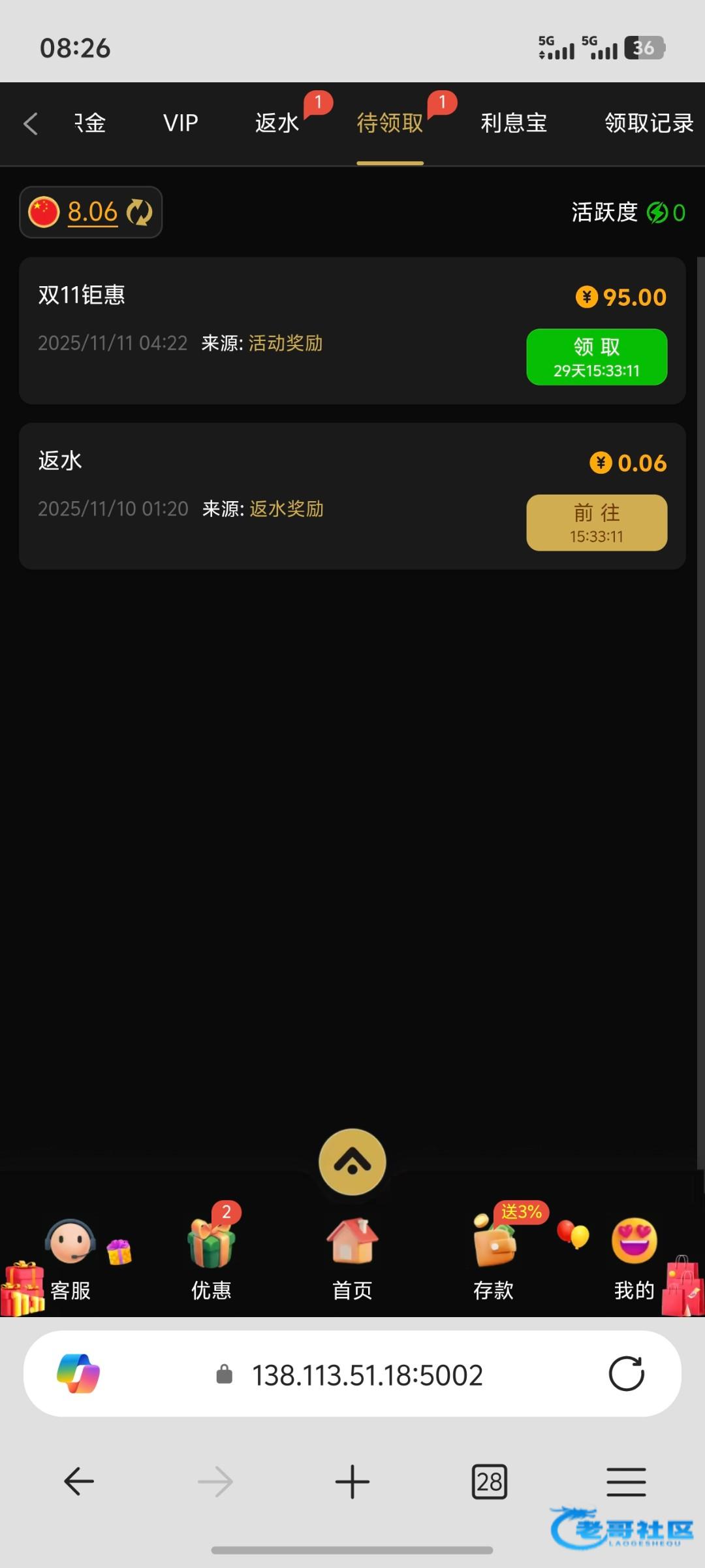 在这台输了2000,每次回馈都是95,领了快800多了,但是一次没有出款