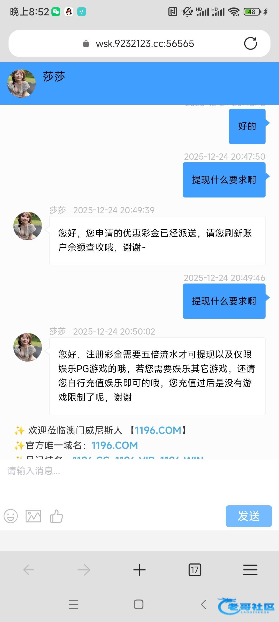 网址6868681.cc,注册绑卡直接找客服申请注册新人19彩金就行,问客服说提现5倍流水就行,限PG