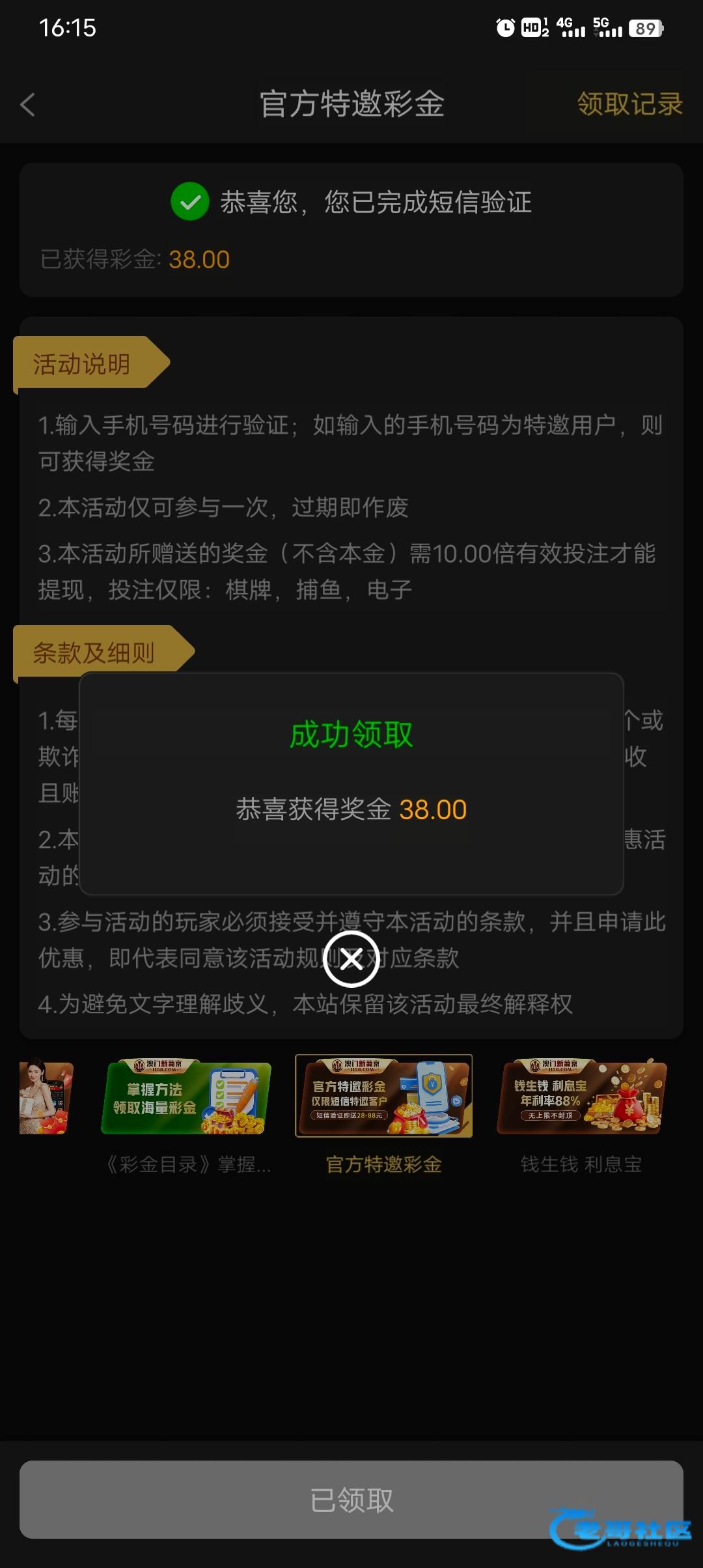 有效,之前充了10,今天领了21出380!