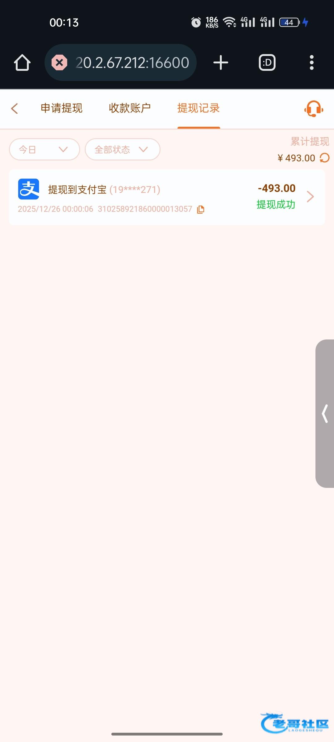 提了100等到账 终于可以吃饭了