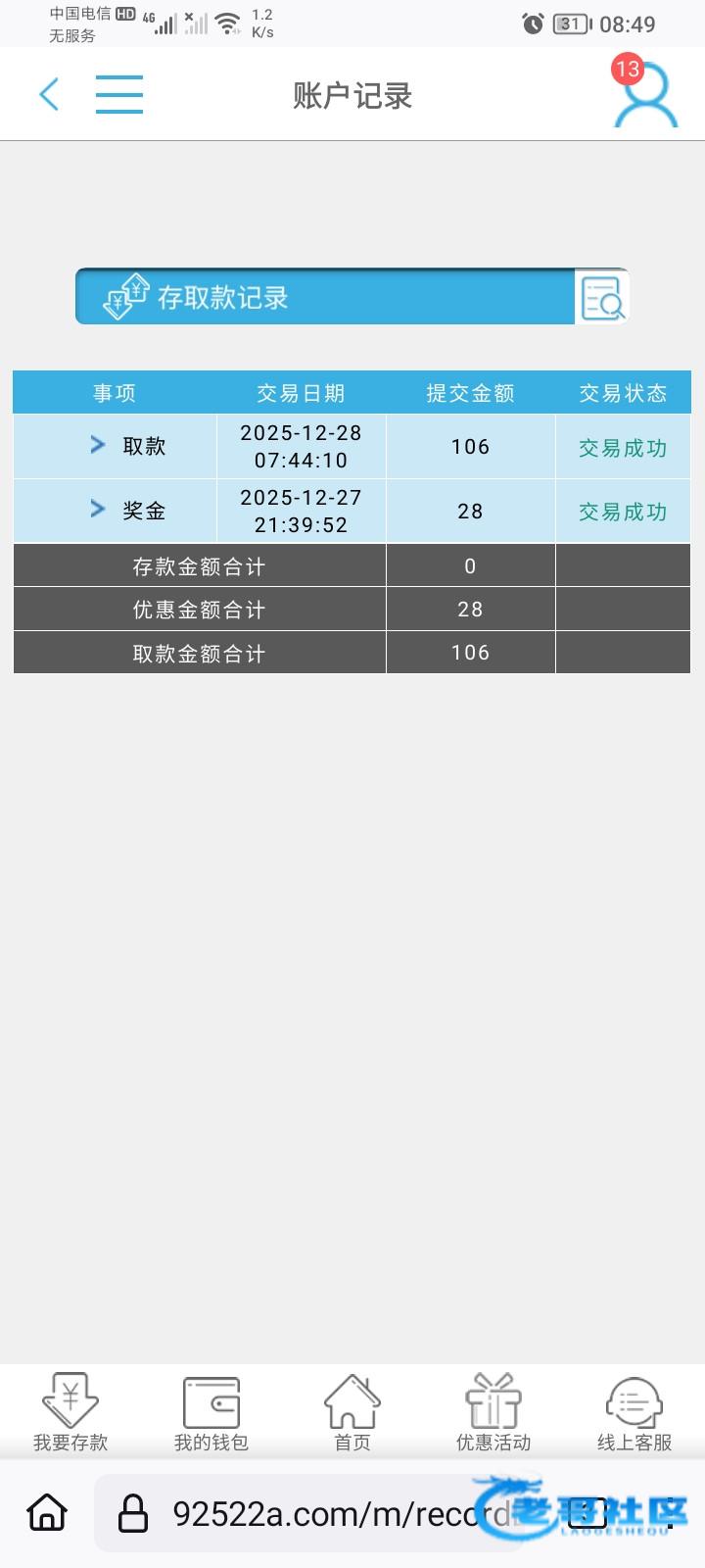 注册送的28,几把百家乐打到100出款了。